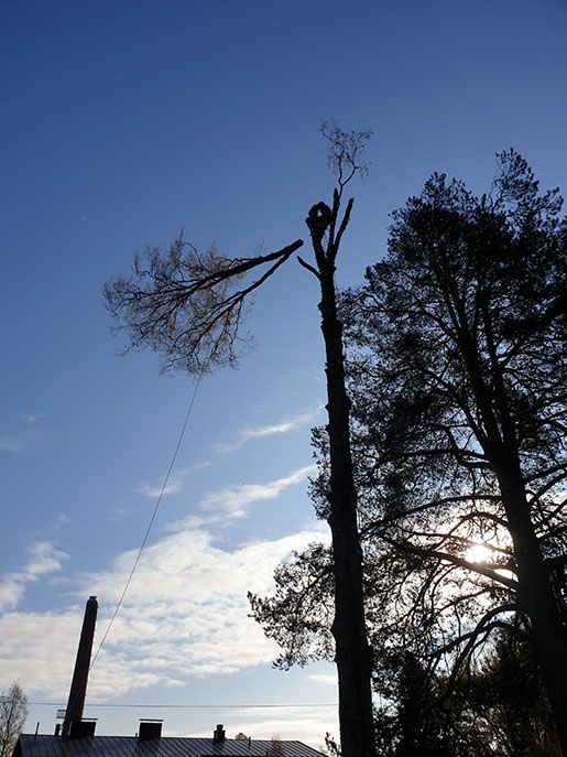 Usein puut ovat päässeet venähtämään varsin muhkeisiin mittoihin tai kasvavat muuten vaan sellaisissa paikoissa, että niiden poistamiseen vaaditaan erikoisosaamista ja välineitä. Käytämme laadukkaita kaadonsuuntaajia ja taljoja. Tarvittaessa poistamme puun vaikka paloina kiipeily- ja köysitekniikoita käyttäen. Yhteistyökumppaneiden kautta käytössämme on myös yli 30m autonosturi. Tarvittaessa viemme kaiken hakkuujätteen pois kohteesta