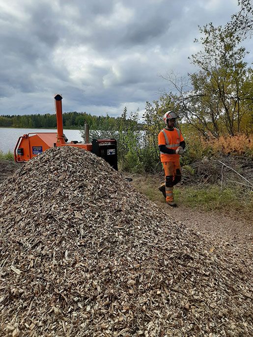 Nykyaikainen telahakkurimme hakettaa kaiken puuaineksen aina 16cm asti, joten käytännössä kaikki alle polttopuukokoinen puu saadaan tarvittaessa haketettua.